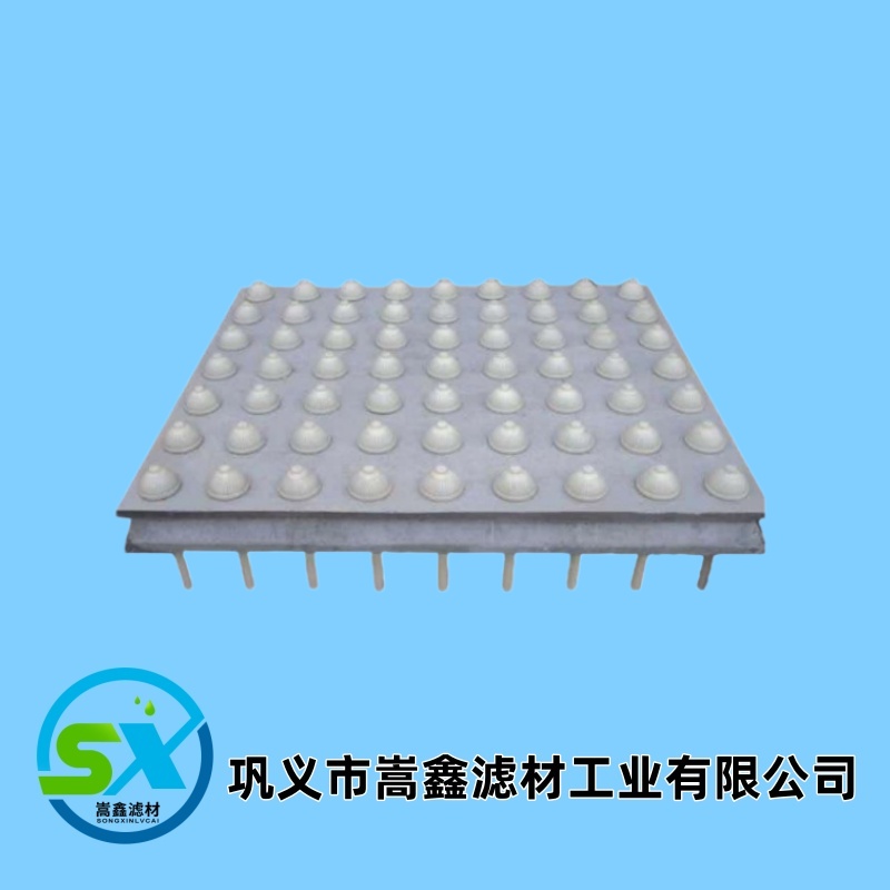 1、為了實現整體澆筑,必須有不拆卸的成型板材(工藝上采用食品級ABS板)制作凹凸型模板,能可靠支撐整體澆筑工程的施工荷載(當施工荷載400kg/m2時,模板撓度變化<1.2mm),模板凸處帶頸套的圓孔是用以固定濾頭預埋件(濾座)。